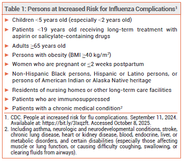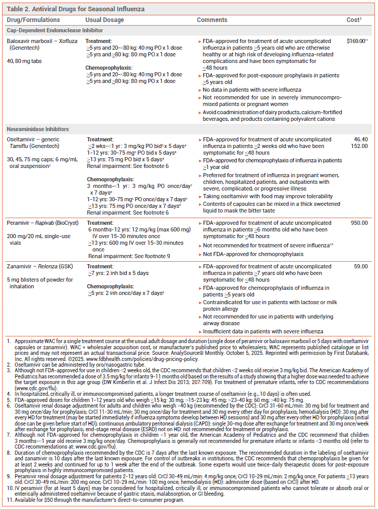 - CDC. Influenza antiviral medications: summary for clinicians. December 8, 2023. Available at: https://bit.ly/48KeAna. Accessed October 8, 2025.